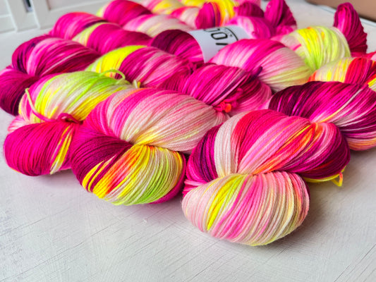 Pink Pop Long Zip | Assigned Pooling Yarn | 4ply Merino Sock