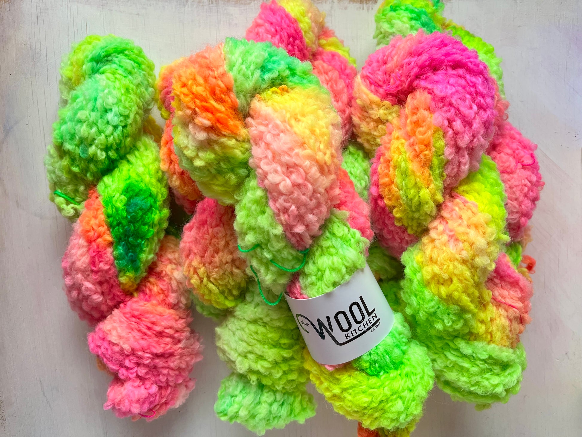 Chunky Boucle Hand dyed - 30% Superfine Alpaca, 70% Highland Wool, Non-Superwash 100g Hanks, 80m per 100g.